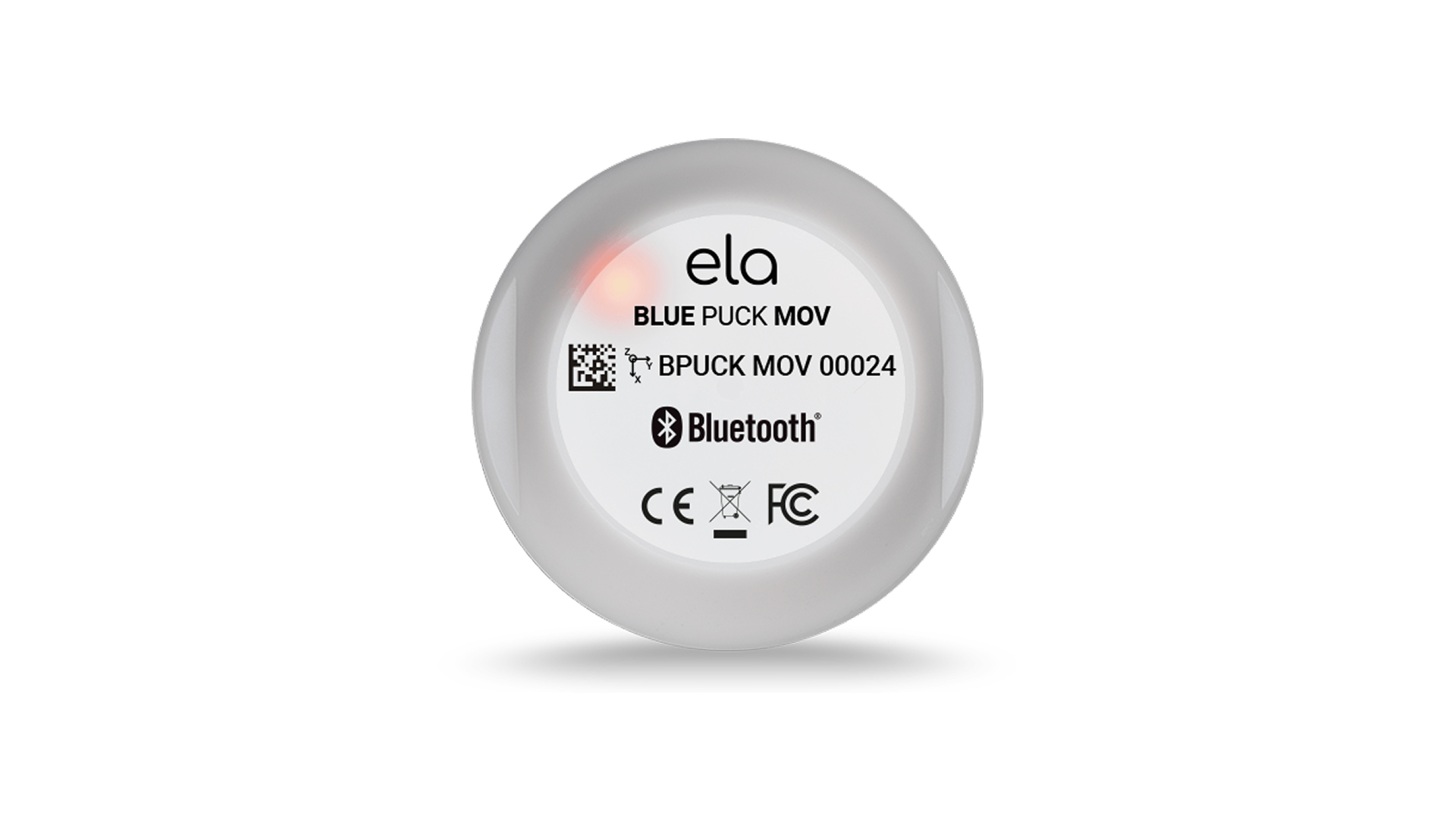 La solución de Sensor inalámbrico de movimiento utiliza el ELA Innovation Blue PUCK MOV, un sensor Bluetooth compacto y autónomo, diseñado para entornos industriales exigentes.